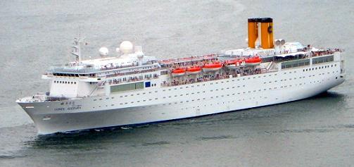 コスタクルージズ (Costa Crociere S.p.A.) 運航。 Built: 1992, IMO: 6916885, MMSI: 247816000 Gross tonnage: 28,430t, Length: 188.0m, Beams: 26.0m |