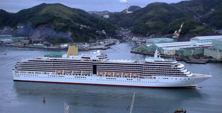 長崎港に入港する「アルカディア」 |