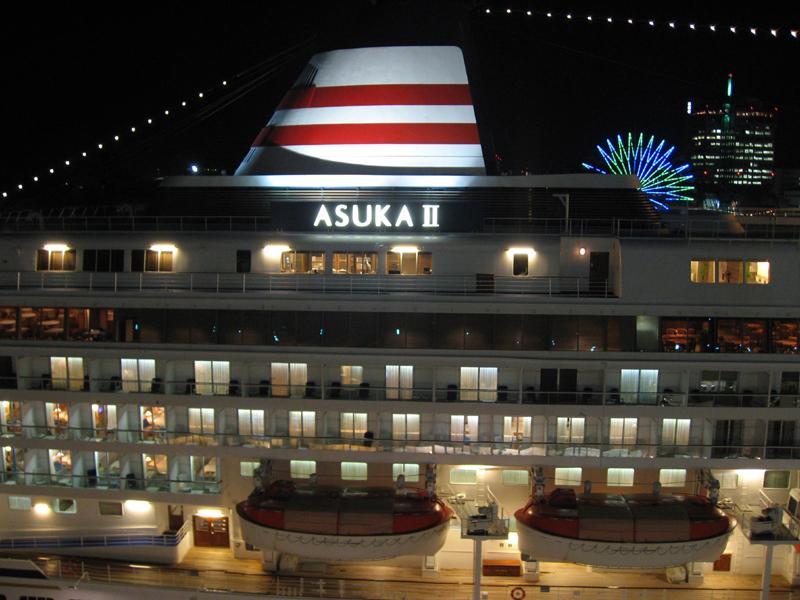 オリエンタルホテル客室から見た「飛鳥 II」 |