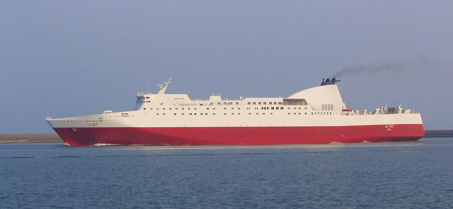 Wikipedia Commons にて提供されている「フェリーひむか」の写真。宮崎港を出港するシーン。Author: Mer Vent |