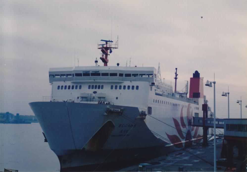 東京港に入港する「さんふらわあえりも」です。フェリー東ターミナルに着岸します。当時は東京・苫小牧間を約30時間かけて運行していました。 |