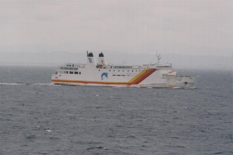 太平洋フェリーの新「きそ」ですれ違ったときのスナップです。解像度が粗いですがご容赦ください。 |