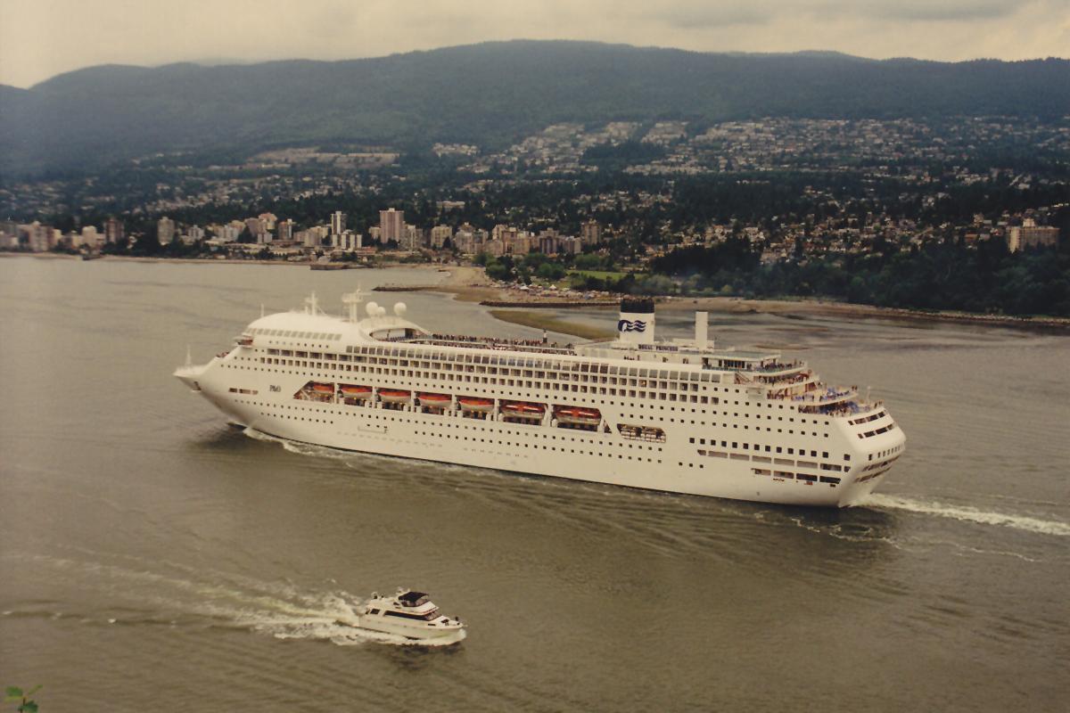 プリンセスクルージズ (Princess Cruises Inc.) 運航。 Built: 1991, IMO: 8521232, MMSI: n/a Gross tonnage: 69,845t, Length: 247.0m, Beams: 32.0m |