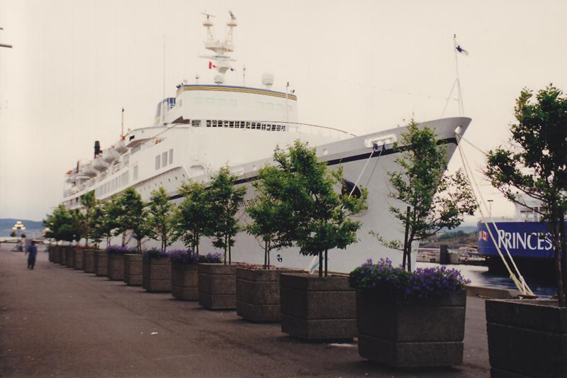 ビクトリア港に寄港した「ユニバースエキスプローラ」です。古い写真を再スキャンして投稿しました。 |