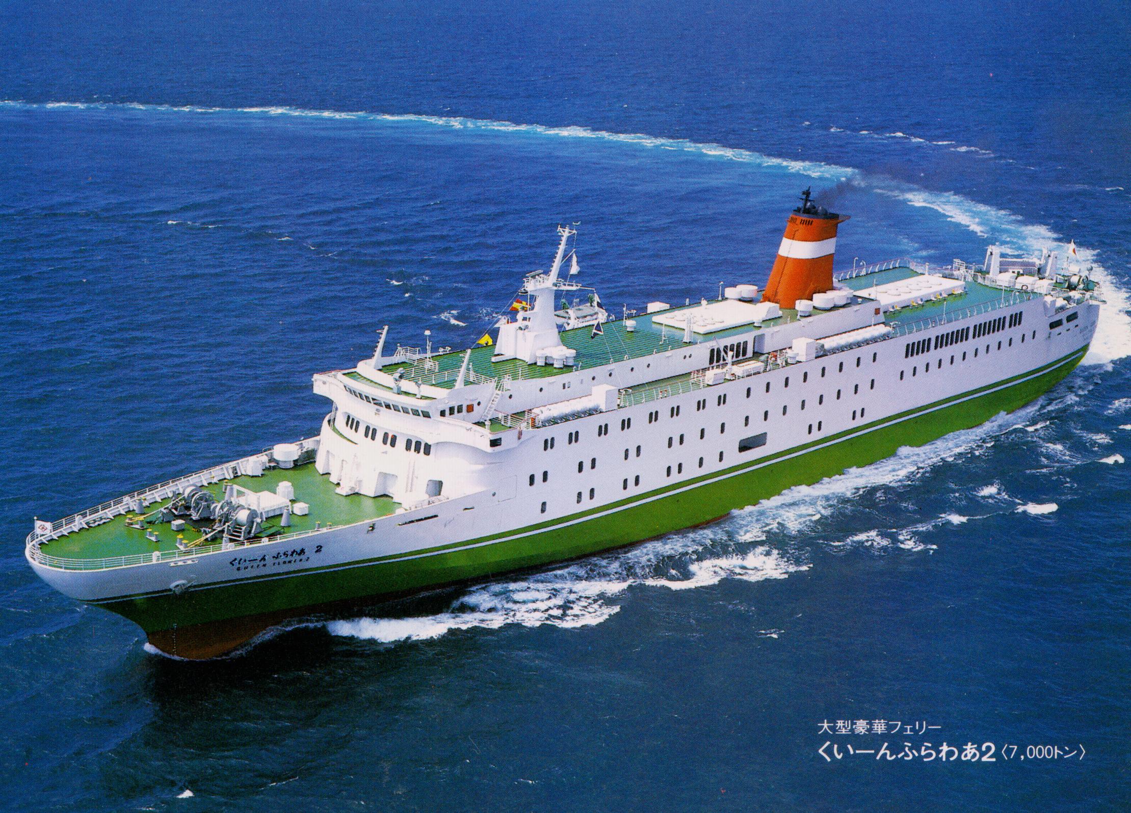 関西汽船株式会社 (Kansai Kisen Co., Ltd.) 運航。 Built: 1975, IMO: 7401966, MMSI: n/a Gross tonnage: 6,801t, Length: 140.0m, Beams: 18.5m |