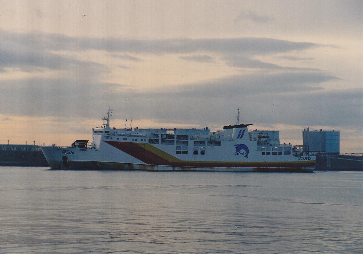 東日本フェリー株式会社 (Higashi Nihon Ferry Co. Ltd.) 運航。 Built: 1983, IMO: 8213782, MMSI: n/a Gross tonnage: 5,100t, Length: 126.2m, Beams: 20.0m |