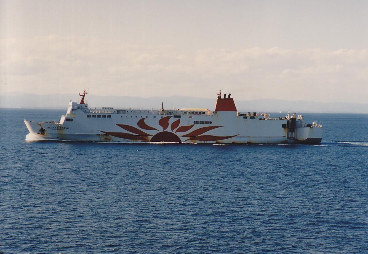 苫小牧へ向かう「さんふらわあきりしま」から撮影した「さんふらわあおおあらい」です。当時は「さんふらわあおおあらい」と「さんふらわあえりも」、「さんふらわあきりしま」と「さんふらわあさつま」がランニングメートとして(東京)・大洗・苫小牧を結んでいました。 |