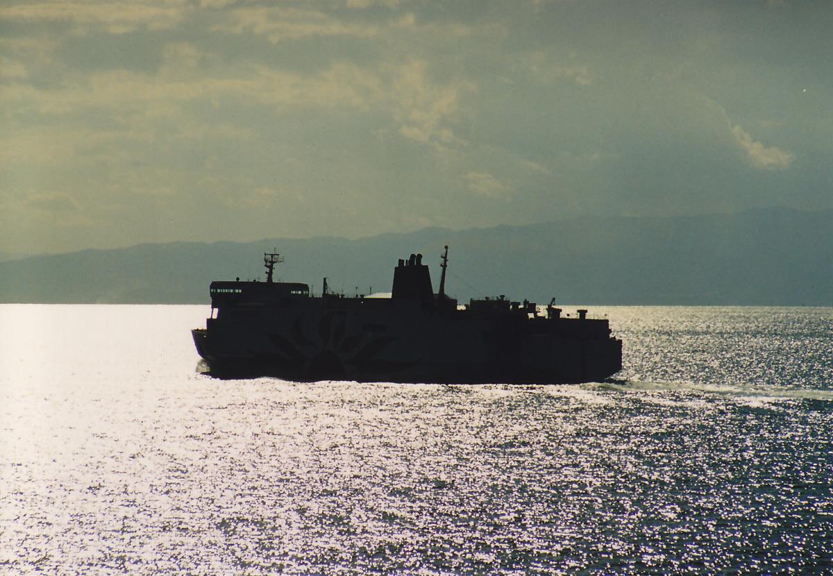 苫小牧へ向かう「さんふらわあきりしま」から撮影した「さんふらわあおおあらい」です。当時は「さんふらわあおおあらい」と「さんふらわあえりも」、「さんふらわあきりしま」と「さんふらわあさつま」がランニングメートとして(東京)・大洗・苫小牧を結んでいました。 |