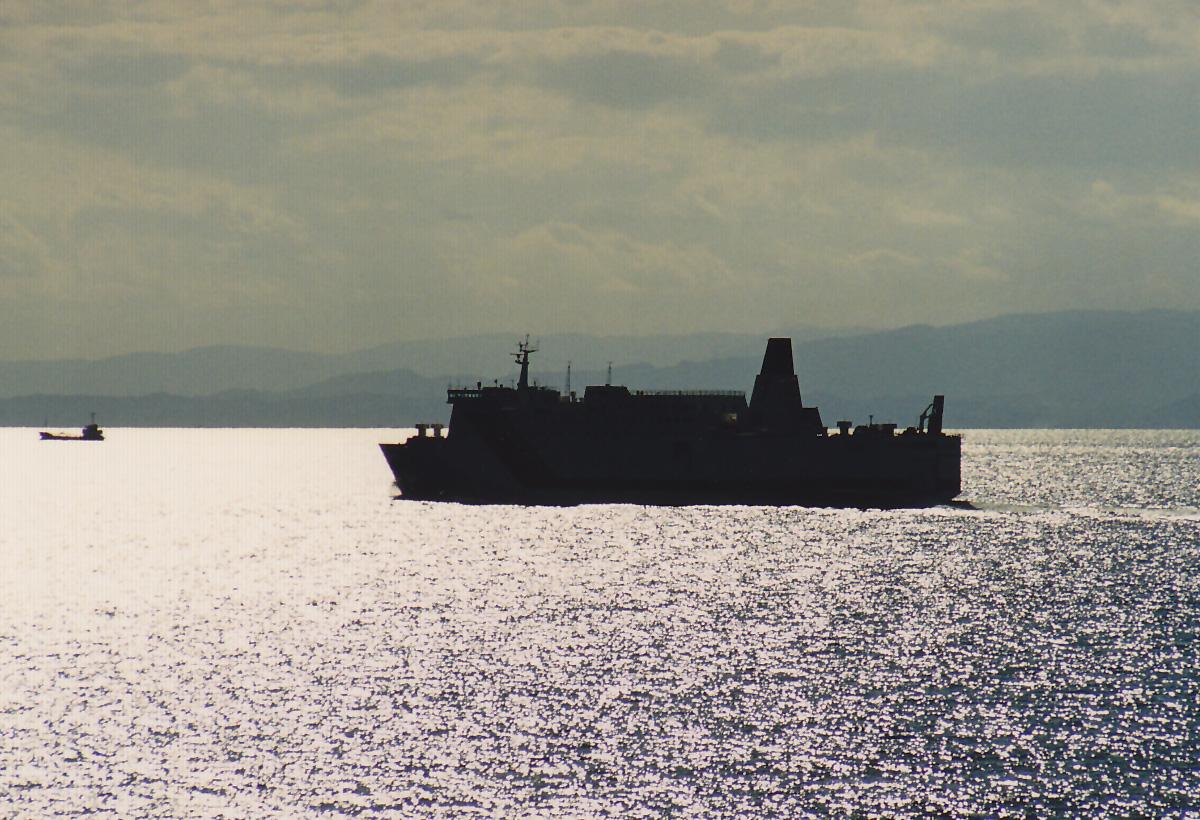 福島沖をゆく「さんふらわあきりしま」から撮影しました。当時はこの船がのちに「さんふらわあふらの」となることは誰も想像できませんでした。 |