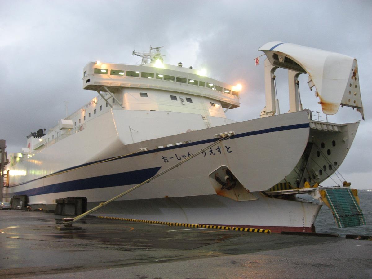 オーシャントランス株式会社 (Ocean Trans Co., Ltd) 運航。 Built: 1991, IMO: 9132720, MMSI: 431601219 Gross tonnage: 11,522t, Length: 166.0m, Beams: 25.0m |