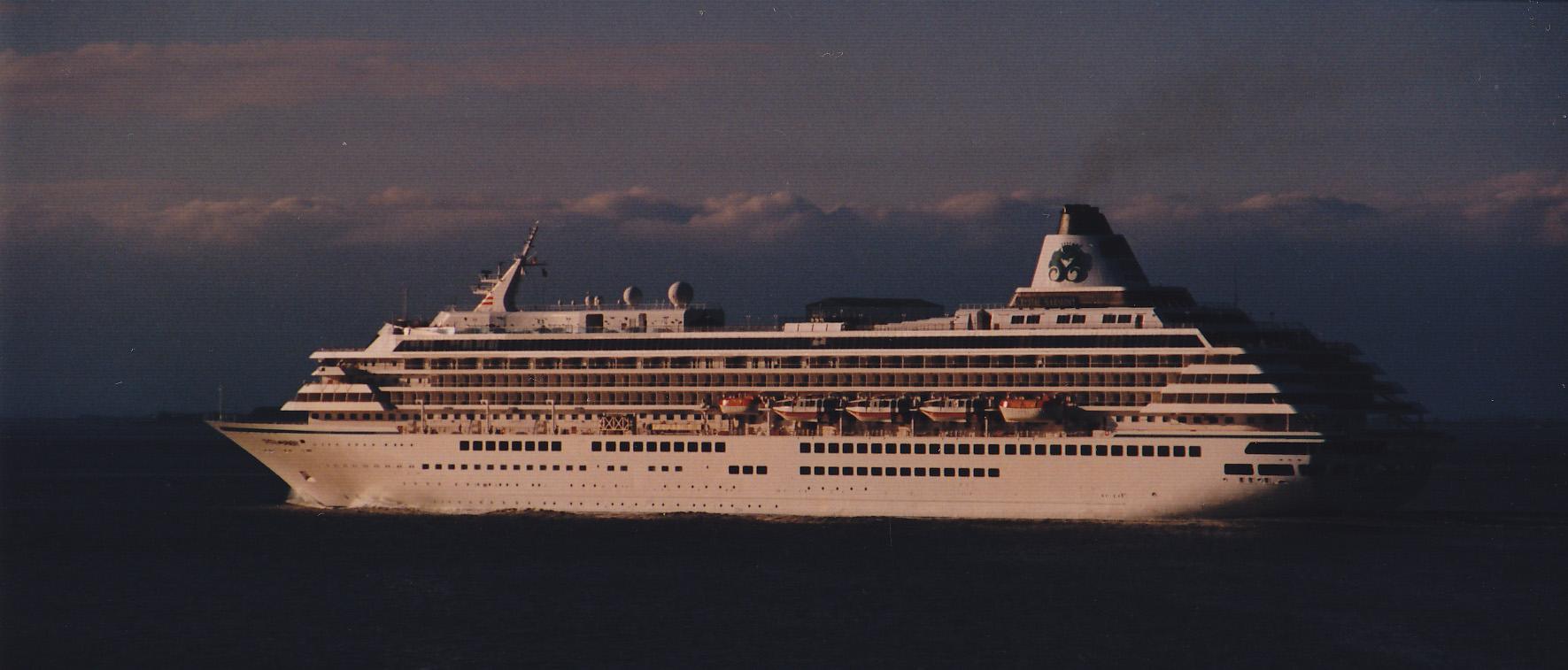 クリスタルクルージズ (Crystal Cruises Inc.) 運航。 Built: 1990, IMO: 8806204, MMSI: n/a Gross tonnage: 48,621t, Length: 241.0m, Beams: 29.6m |