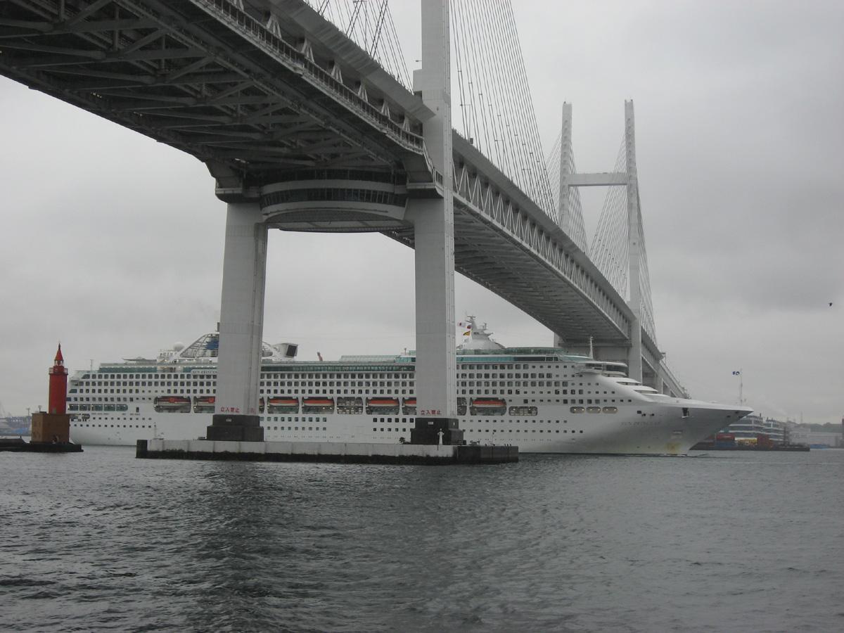 雨の中、横浜ペイブリッジをくぐる「サンプリンセス」 |