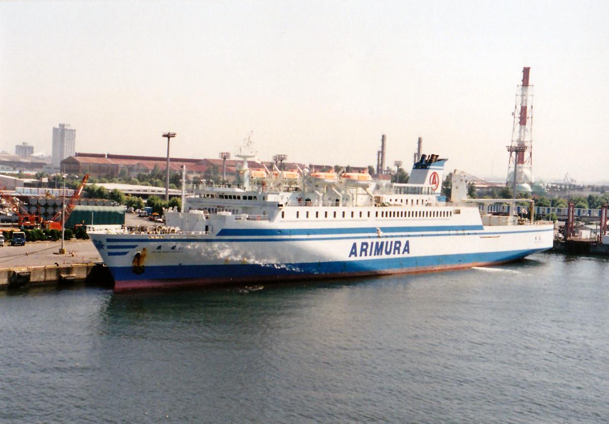 有村産業株式会社 (Arimura Sangyo Co., Ltd.) 運航。 Built: 1995, IMO: 9135250, MMSI: 431830000 Gross tonnage: 9,225t, Length: 167.0m, Beams: 22.0m |