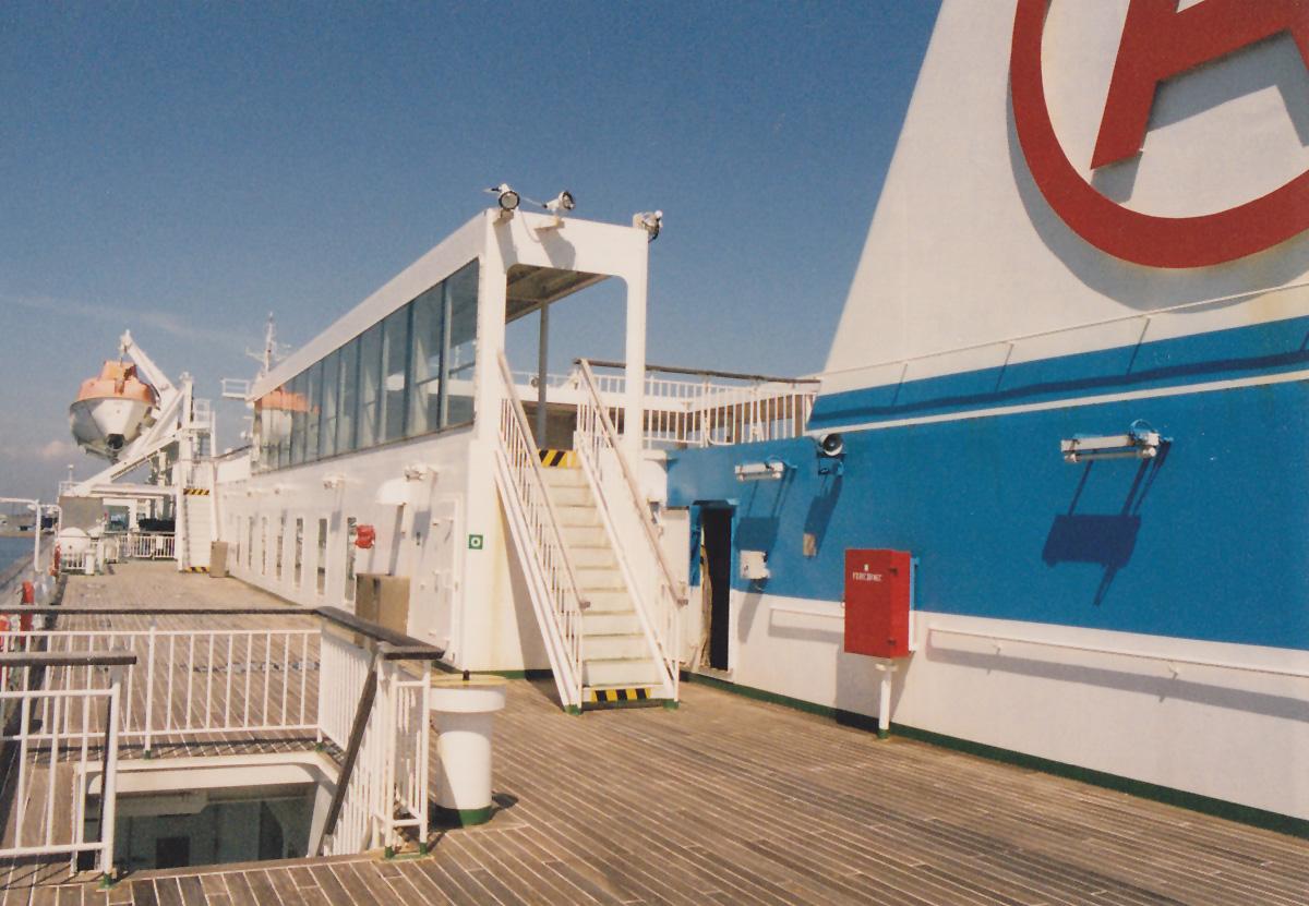 大平洋をゆく「クルーズフェリー飛龍 21」のデッキ |