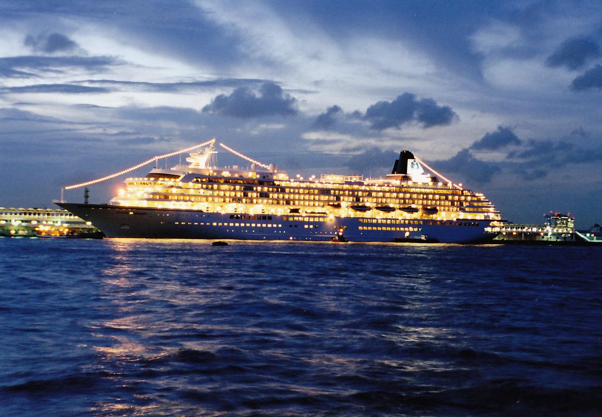 クリスタルクルージズ (Crystal Cruises Inc.) 運航。 Built: 1990, IMO: 8806204, MMSI: n/a Gross tonnage: 48,621t, Length: 241.0m, Beams: 29.6m |