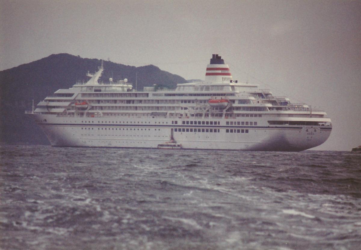 郵船クルーズ株式会社 (Yusen Cruise Co., Ltd.) 運航。 Built: 1991, IMO: 8913162, MMSI: n/a Gross tonnage: 28,717t, Length: 193.0m, Beams: 25.0m |