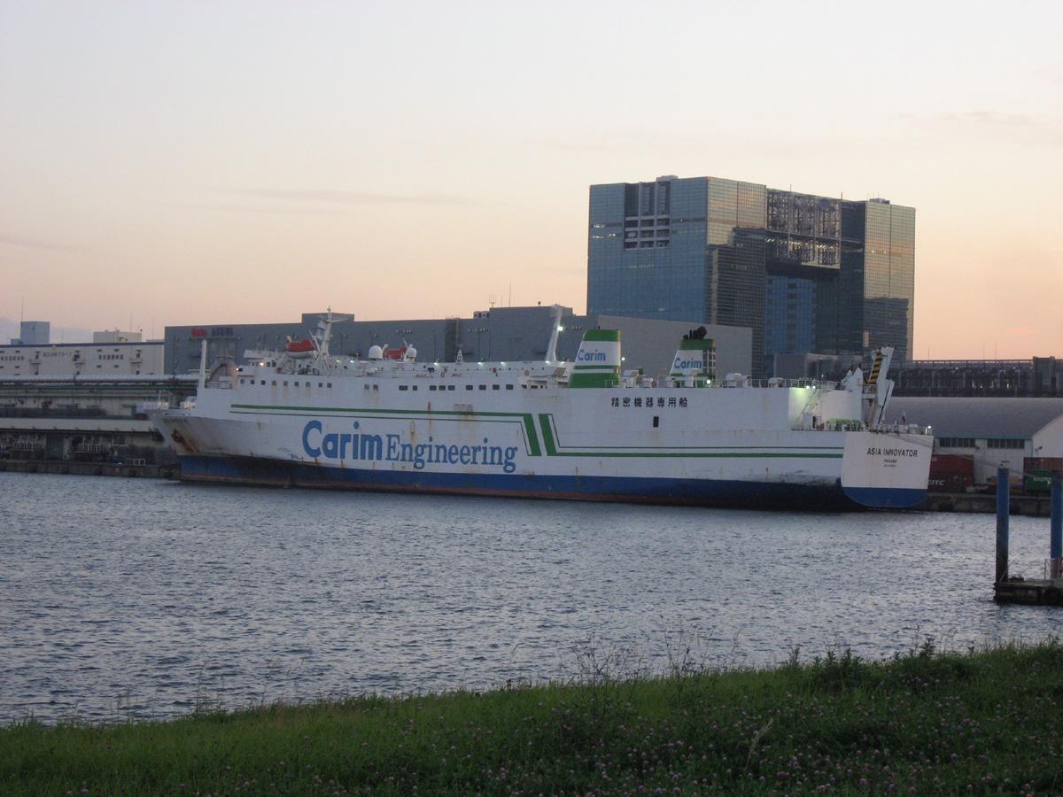 キャリムエンジニアリングの精密機器輸送に使われているRORO船です。元「わかなつおきなわ」を改装した船ですが、東京では新「わかなつ」と向かい合わせに停泊していました。 |