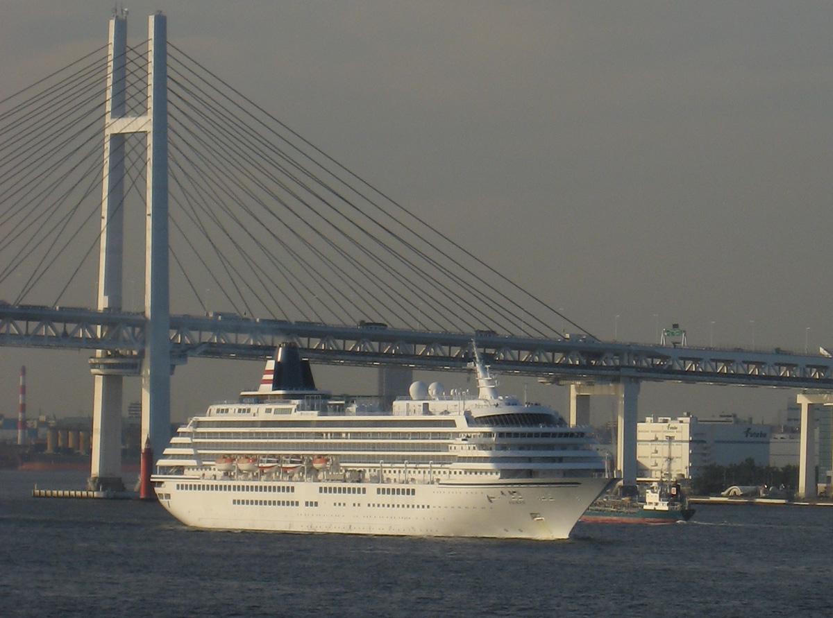 郵船クルーズ株式会社 (Yusen Cruise Co., Ltd.) 運航。 Built: 1990, IMO: 8806204, MMSI: 432545000 Gross tonnage: 50,142t, Length: 241.0m, Beams: 29.6m |