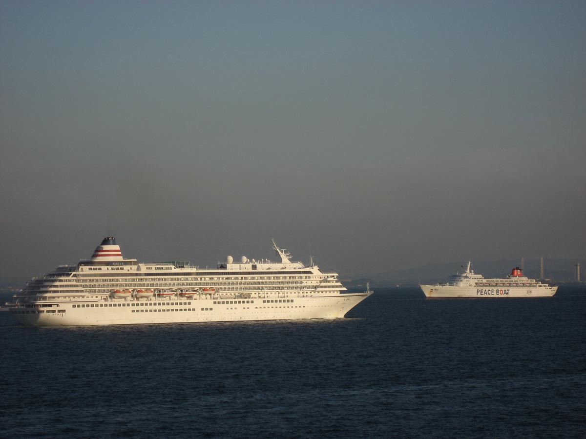 本牧沖で「オセアニック」と対航しました。レンズが汚れていなければ綺麗な写真だったのですが残念です。 |