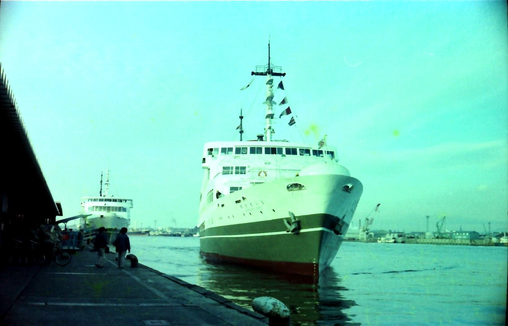 写真登録頂きありがとうございます。関西汽船全盛期の様子がわかる貴重な写真ですね。手前の船が「むらさき丸」、奥の船が「くれない丸」でしょうか?こちらの港からは「まや丸」、「くいーんふらわあ2」などに乗船したことがあります。「くれない丸」のもう少し大きめの画像はお持ちでしょうか?この「くれない丸」は現在も横浜港でレストラン船として元気に活躍しているので写真を見比べると興味深そうです。ivory様には以前も「すみれ丸」などの貴重な写真の投稿も頂きました。またの投稿をお待ちしています。