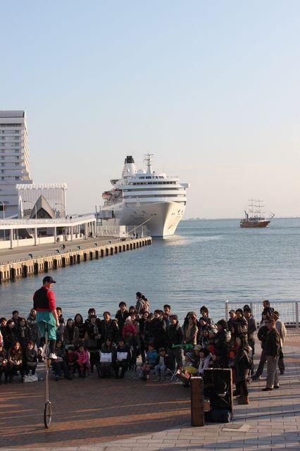神戸港の楽しい様子が伝わってくる写真ですね。大道芸も楽しそうですが後ろの「咸臨丸」もいい味を出していますね。投稿ありがとうございます。