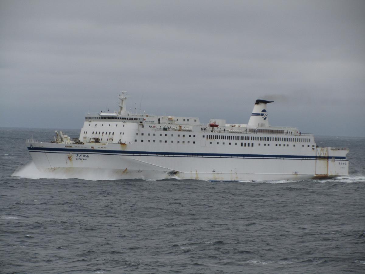 太平洋フェリー株式会社 (Taiheiyo Ferry Co., Ltd.) 運航。 Built: 1989, IMO: 8815073, MMSI: 431201130 Gross tonnage: 13,937t, Length: 193.0m, Beams: 27.0m |