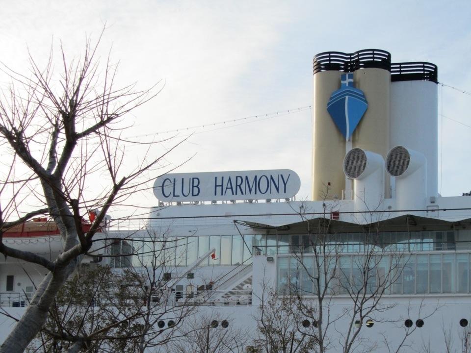 長崎港松が枝に停泊中の「クラブハーモニー」です。船名の部分をよくみるとCosta Marinaの表記も読み取れます。 |