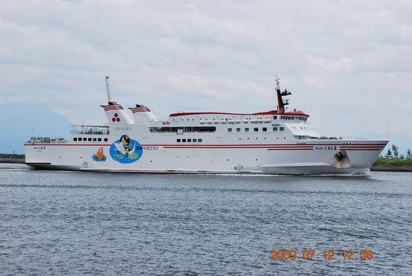 隠岐汽船株式会社 (Oki Kisen Co., Ltd.) 運航。 Built: 1995, IMO: 9119969, MMSI: n/a Gross tonnage: 2,343t, Length: 99.3m, Beams: 16.0m |