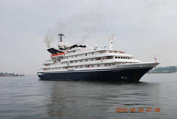 オリオンエキスペディションクルージズ (Orion Expedition Cruises) 運航。 Built: 1990, IMO: 8708602, MMSI: n/a Gross tonnage: 4,077t, Length: 88.3m, Beams: 15.3m |