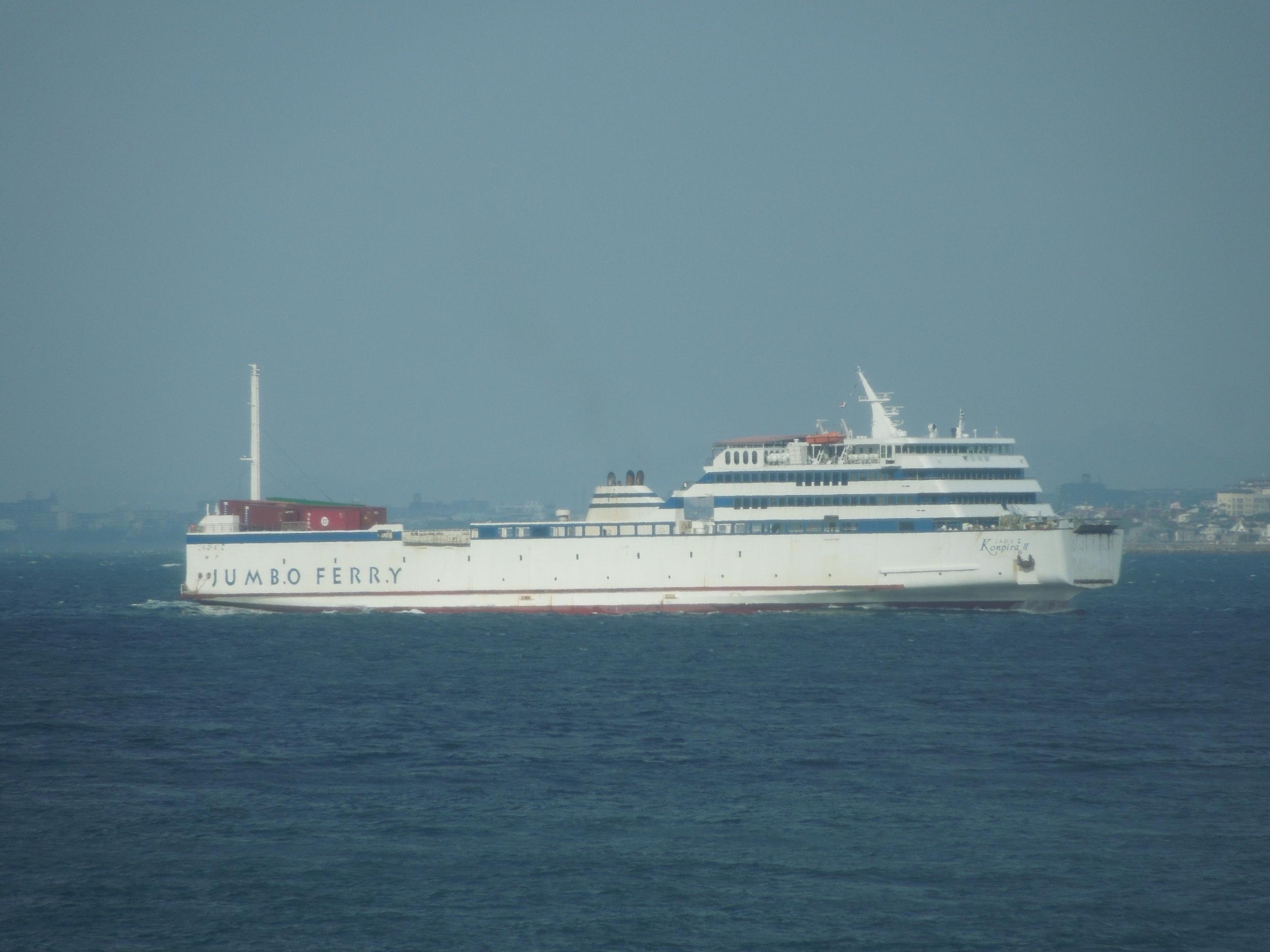 ジャンボフェリー (Jumbo Ferry Co. Ltd.) 運航。 Built: 1989, IMO: 8909408, MMSI: 431000457 Gross tonnage: 3,639t, Length: 115.9m, Beams: 20.0m |