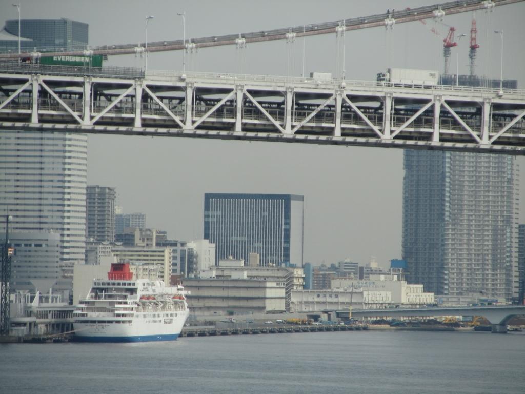 晴海ふ頭に着岸中の「ふじ丸」が見えたので撮影してみました。ガラス越しなのが残念ですがこの角度からの写真もあってもいいかなと思い投稿してみました。 |