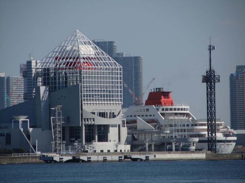 日の出埠頭の南あたりから停泊中の「ふじ丸」がよく見えたので撮影しました。いなくなるのは寂しいですね。 |