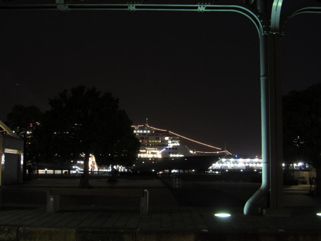 夜の駅から見える客船 |